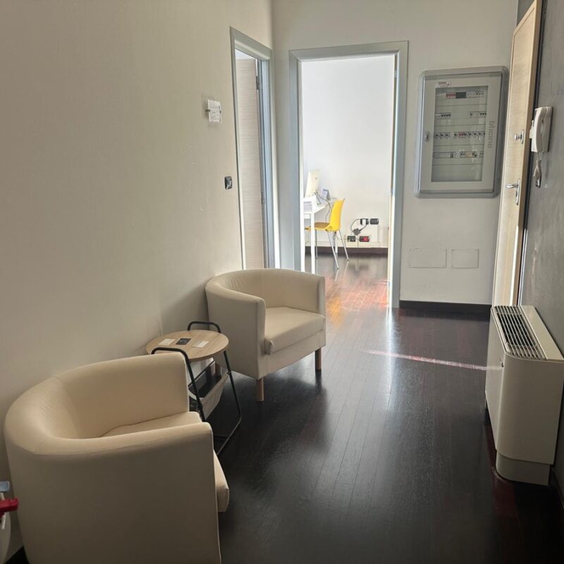 L’ufficio ha una superficie ben distribuita con quattro stanze separate, luminose con arredi moderni pronti all’uso, due bagni ed un ingresso accogliente e funzionale. La posizione è strategica, comoda ai mezzi e ai servizi.